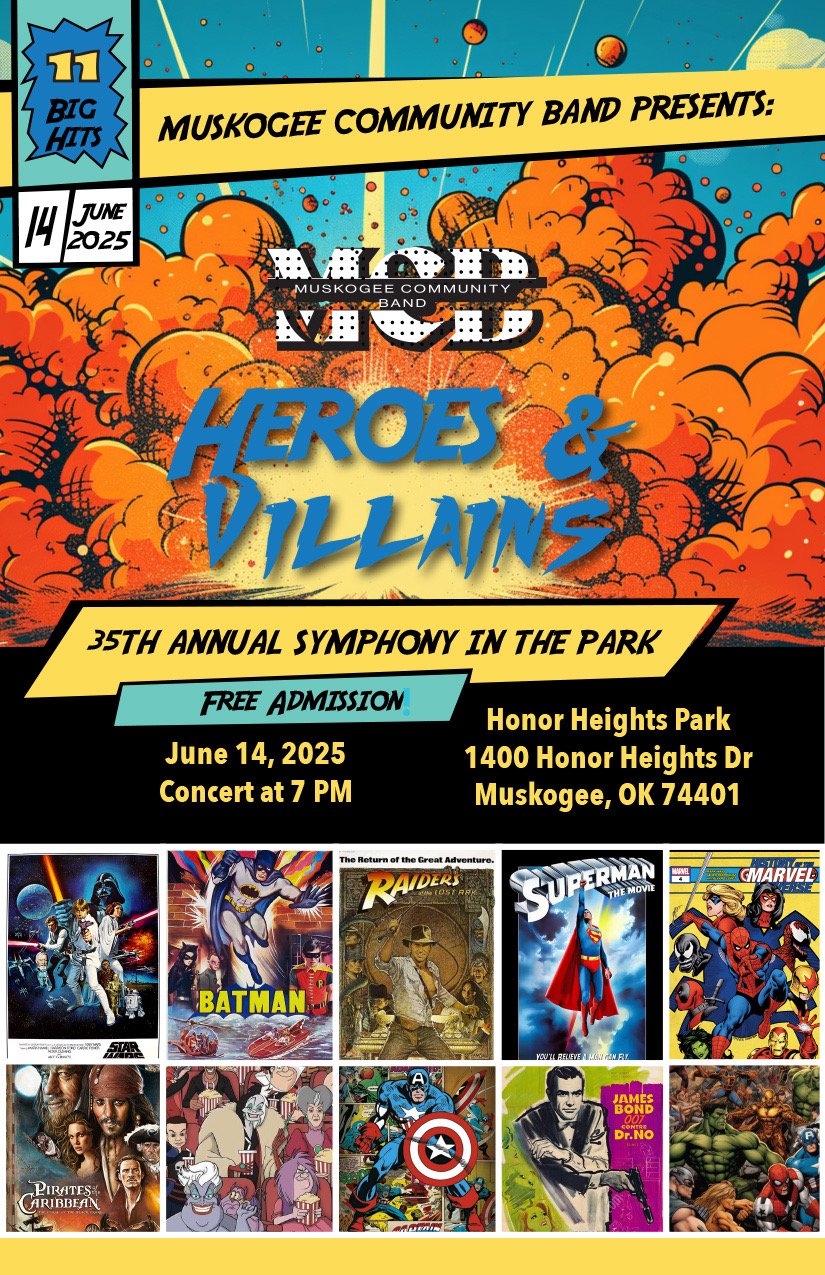 Symphony in the Park, featuring the Muskogee Community Band, will take place on the South Green, Honor Heights Park, Muskogee OK on Saturday, June 14, 2025.